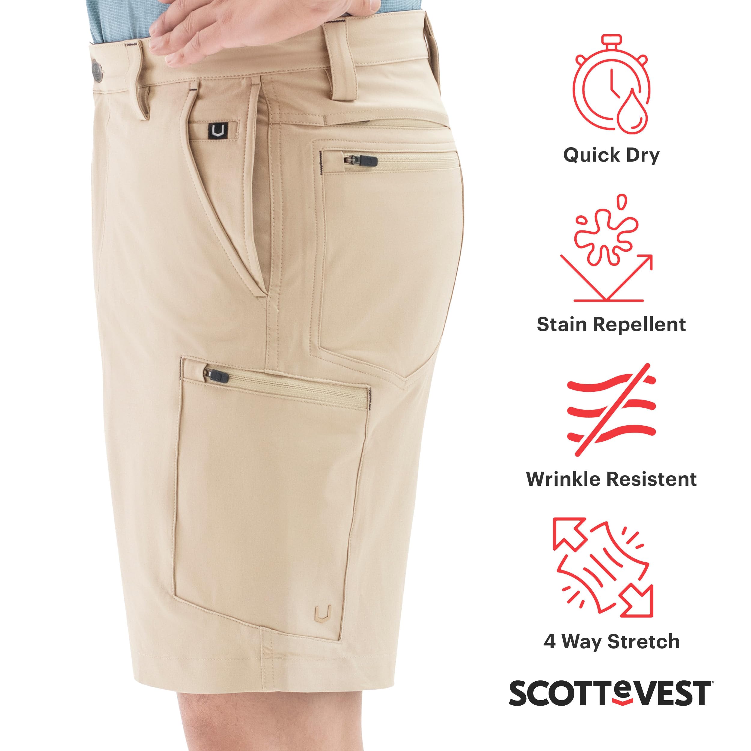 SCOTTeVEST Action Adventure Short for Men - 17 Hidden Pockets - Water Repellent Pant for Travel & More—