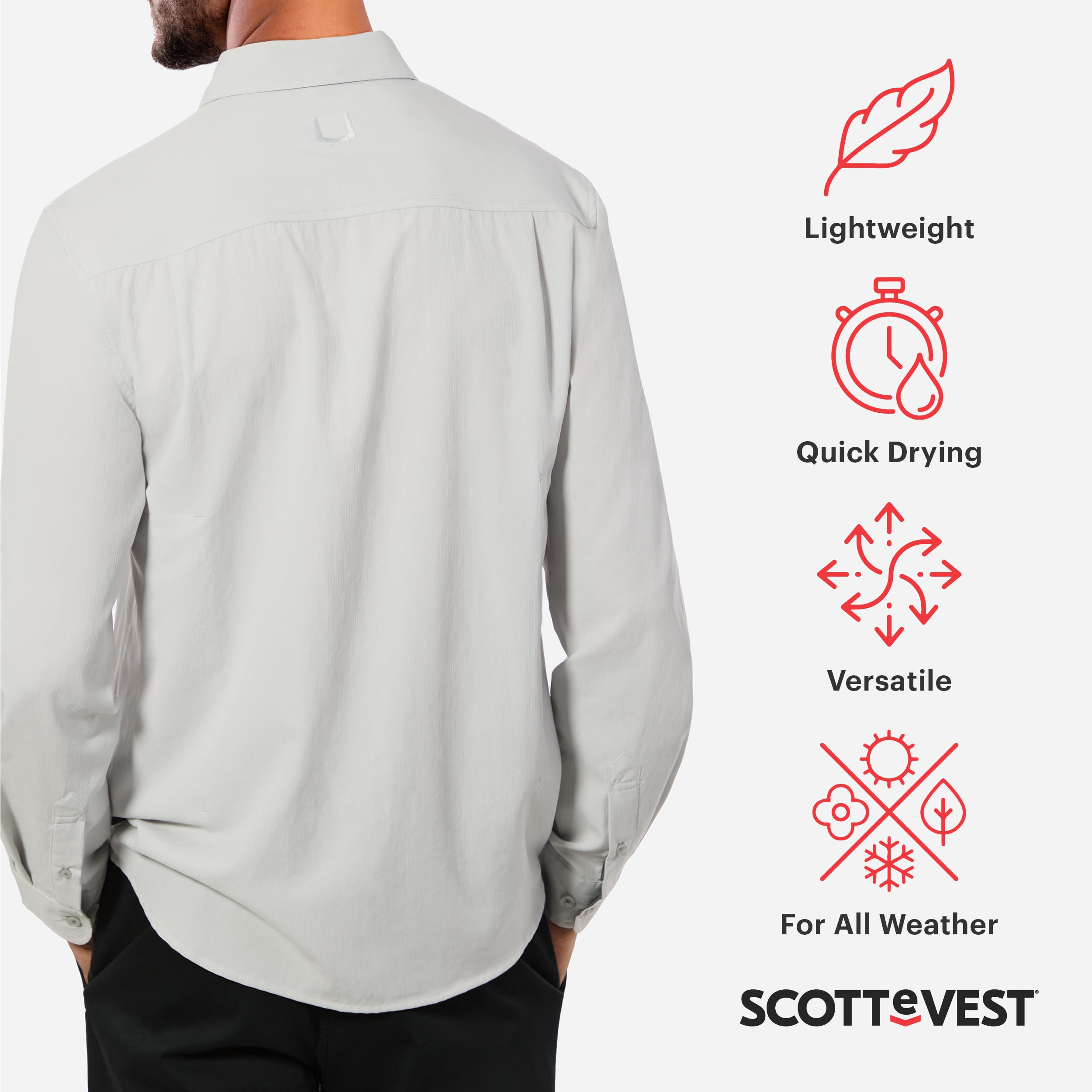 SCOTTeVEST Adventurer Long Sleeve Shirt for Men - 6 Hidden Pockets - Quick Dry Button Down for Travel & More—